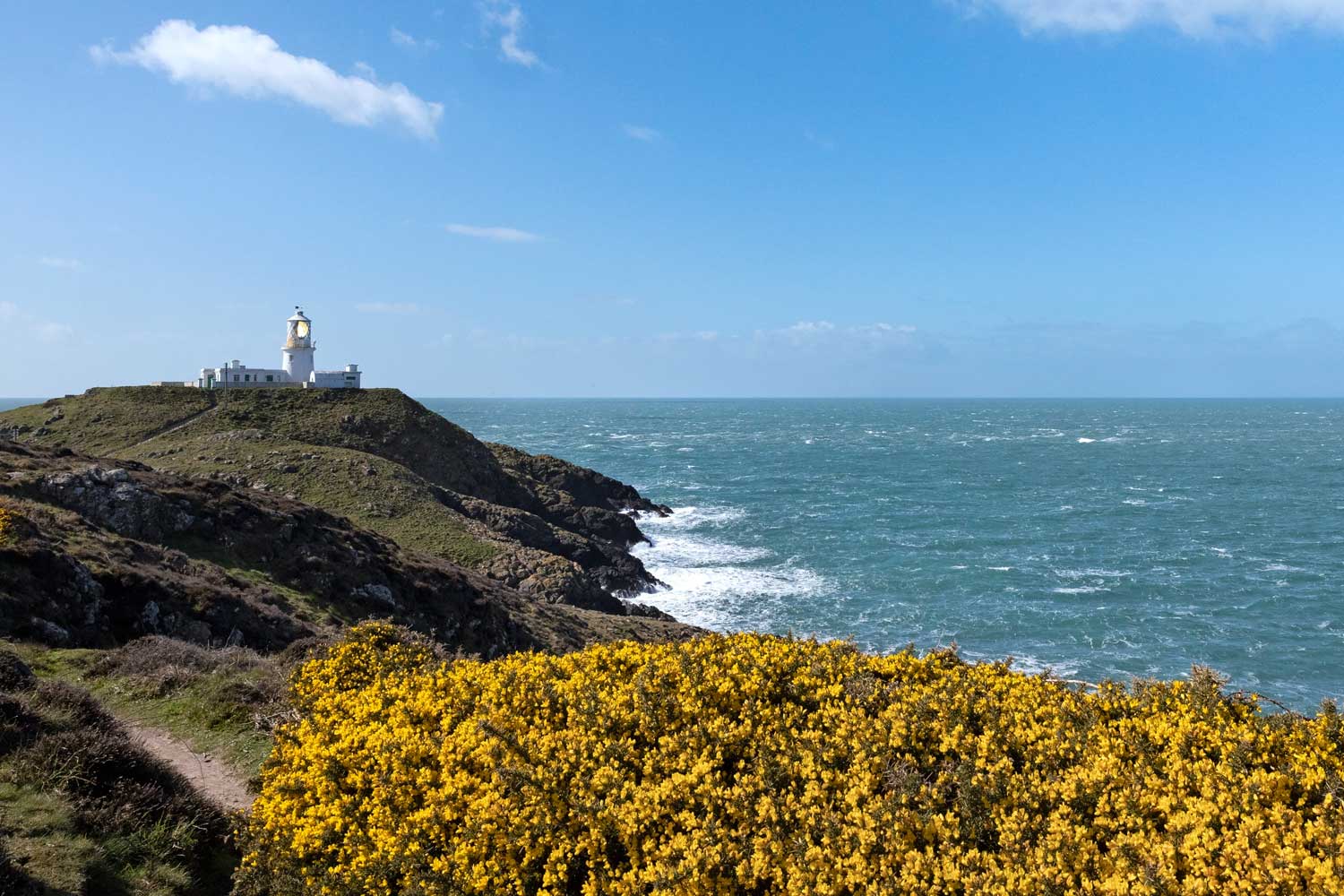 A windy day at Strumble Head in springtime with wonderful colours of yellow and blue.Â